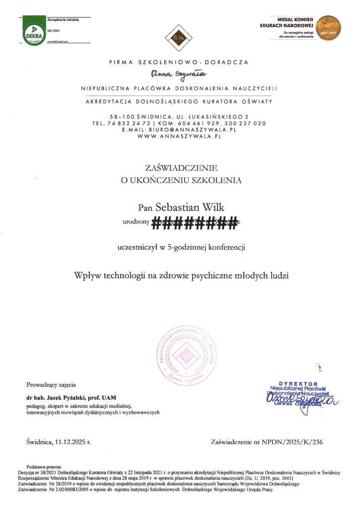 Miałem przyjemność osobiście poznać prof. Jacka Pyżalskiego, który jest niekwestionowanym autorytetem w dziedzinie nauczania i wpływu nowoczesnych technologii na młodych ludzi.